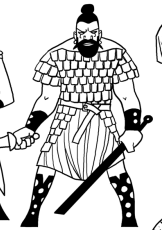 Charon (Michel) Ithaque. Taille moyenne, très maigre (peau sur les os). cheveux noirs en catogan. Souriant (commercial). Teint blême ancien sergent. veut libérer les esclaves. possède une pierre noire de Kubele.